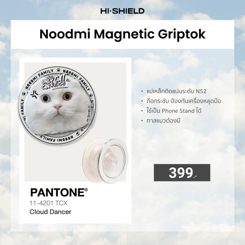 มาต่อกันที่ไอเทมสุดนุบนิบ Magnetic Griptok ลายน้อนนนแมวสุดกวนโอ๊ยจากคอลเลกชัน “Noodmi Family” ถ้าจะให้เข้าธีมสีก็ไม่ยาก แค่เลือกลายนี้เลย น้อน “ชงฉี” ขนปุย ตา 2 สี แมวน้อยที่เก๋กู๊ด ไม่เหมือนใคร แถม Griptok ยังเป็นแม่เหล็กติดได้แบบแน่นหนึบ จะถือเซลฟี่ คุยโทรศัพท์ หรือกางเป็นขาตั้งก็ทำได้หมด คือฟังก์ชันเหลือล้นจนงงอะแกร