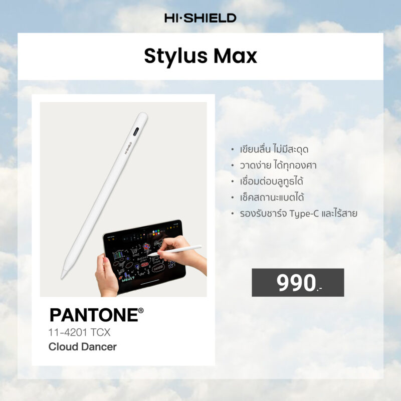 มาถึงไอเทมสุดท้ายกันแล้ว เป็น Gadget ที่เราคุ้นหน้าคุ้นตากันดี ก็คือปากกาสไตลัสสำหรับ iPad นั่นเอง สีขาวทั้งแท่งขนาดนี้ จะบอกว่าไม่เข้าธีมคงไม่ได้เนอะ สำหรับ StylusMax รุ่นนี้ จุดเด่นคือเขียนสมูทมาก สเก็ตรูป ไม่มีสะดุดให้หงุดหงิดใจ แถมเรื่องชาร์จก็สะดวกมากเพราะชาร์จได้ทั้งแบบแปะแม่เหล็กที่ขอบเครื่อง หรือชาร์จผ่านพอร์ต USB-C ก็ได้ เป็นอีกไอเทมที่ต้องหยิบมาคอมพลีทธีมนี้