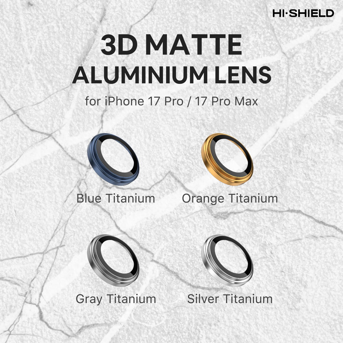 [ฟิล์มกล้อง iPhone 17Pro/ProMax] HI-SHIELD กระจกกันเลนส์กล้อง 3D Matte Aluminium Lens รุ่น iPhone 17Pro / 17ProMax