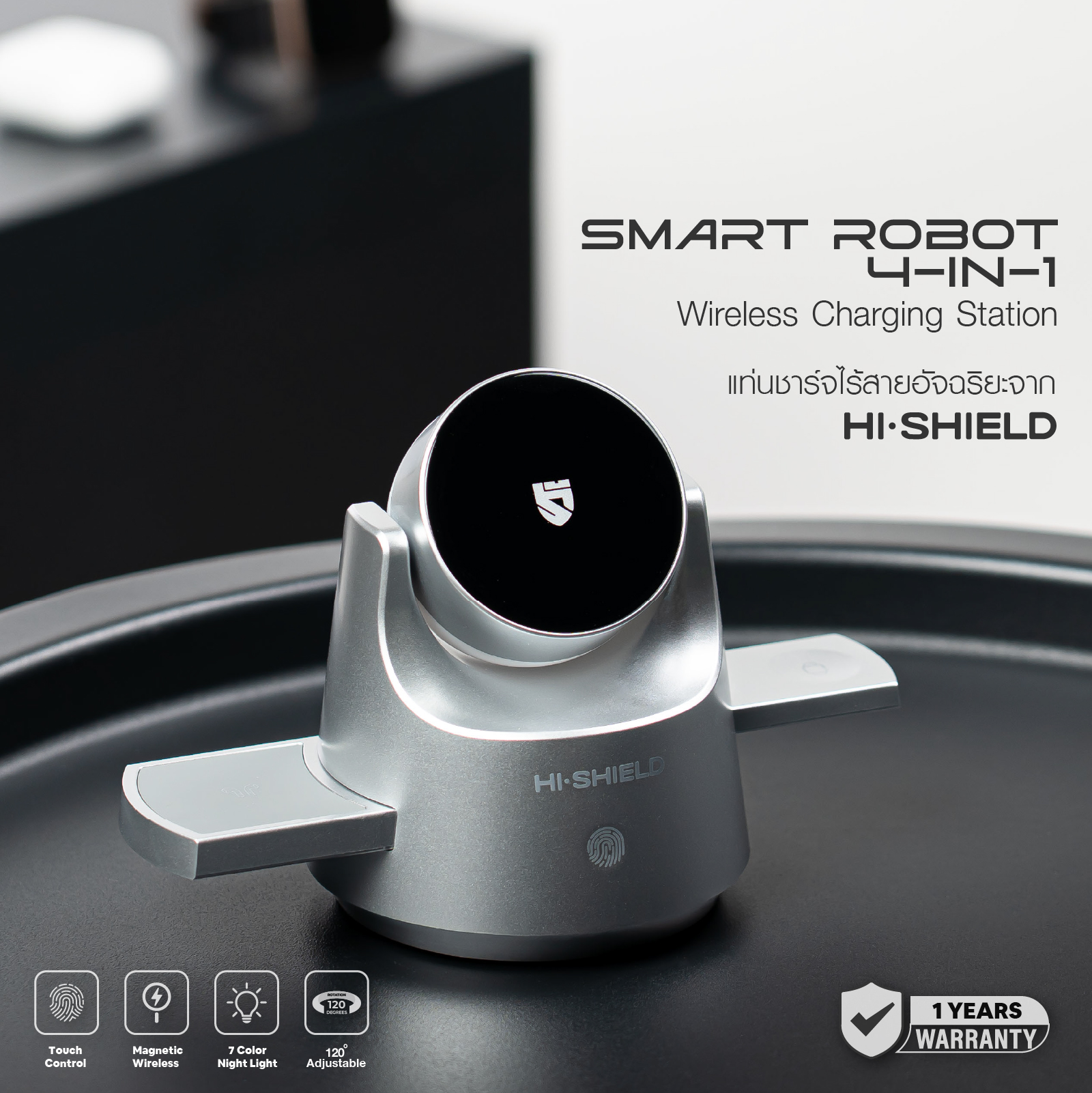HI-SHIELD Smart Robot 4-in-1 Wireless Charging Station – แท่นชาร์จไร้สายอัจฉริยะ [รับประกัน 1 ปี]
