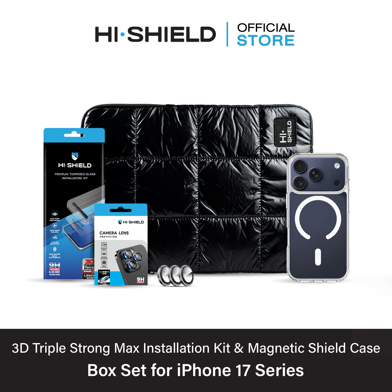 [iPhone17] HI-SHIELD 3D Triple Strong Max Box Set [BS5] – ฟิล์มกระจก ฟิล์มกล้อง เคสกันกระแทก 1.5 ม. [แถมชุดติดตั้ง]