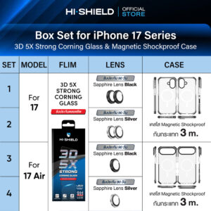 ![[iPhone17] HI-SHIELD 3D 5X Strong Corning Glass Box Set [BS2] - ฟิล์มกระจก ฟิล์มกล้อง เคสกันกระแทก 2 ม. [แถมชุดติดตั้ง]](https://hishieldgadget.com/wp-content/uploads/2025/08/3D-5x-Coring-Glass-I01_M1-02-1-300x300.jpg)
