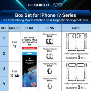 ![[iPhone17] HI-SHIELD 3D Triple Strong Max Box Set [BS5] - ฟิล์มกระจก ฟิล์มกล้อง เคสกันกระแทก 1.5 ม. [แถมชุดติดตั้ง]](https://hishieldgadget.com/wp-content/uploads/2025/08/3D-Triple-Strong-Kit-M01-02-300x300.jpg)