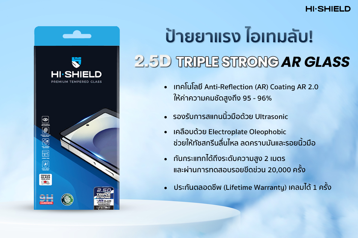 HI-SHIELD 2.5D Triple Strong AR Glass จอใสปิ๊ง สแกนนิ้วฉลุย!